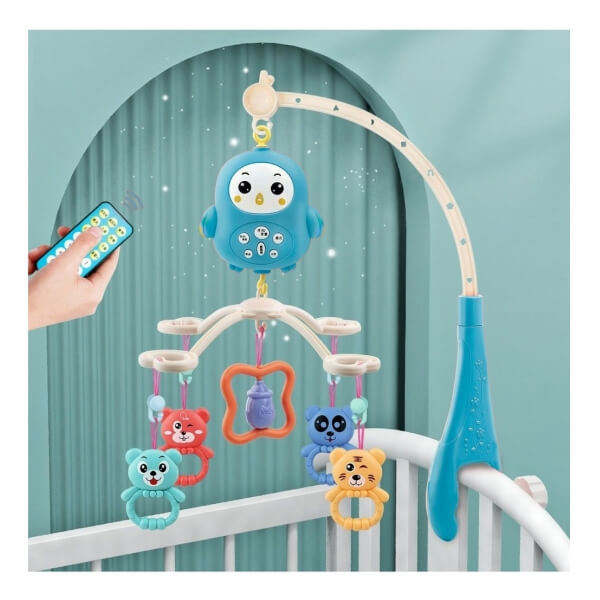 Baby crib musical mobile with rattles – blue