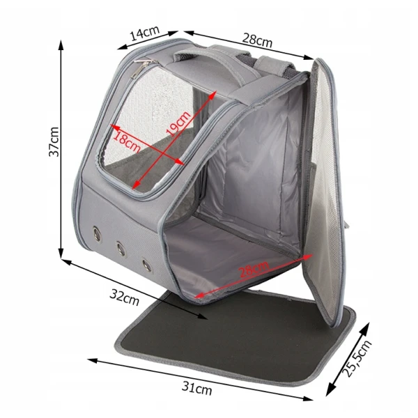 Kott avaneb kahest küljest, sellel on topeltlukuga avad ning läbipaistev „aken“, mis võimaldab lemmikloomal ümbrust jälgida. Hea õhuringluse tagavad võrkpaneelid külgedel ning kolm ventilatsiooniava esiküljel.