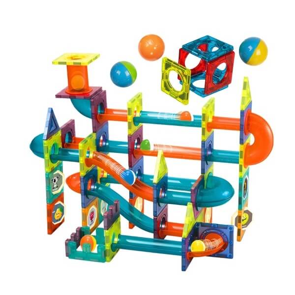 Magnetic tiles with ball run 96 pcs — 3D magnetic building set for kids