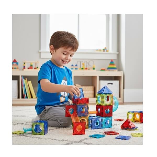 Magnetklotsid on tõeline maiuspala väikestele ehitajatele – 96 osa, tugevad magnetid ja võimalus luua põnevaid kuuliradu, 3D-konstruktsioone ja ruumilisi labürinte.