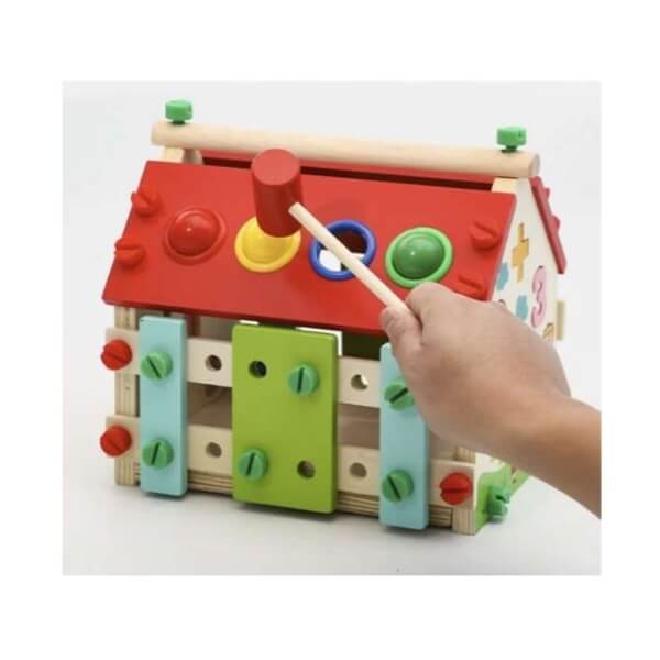 Laps saab mängida ksülofonil, sorteerida kujundeid ning kasutada kaasasolevat haamrit värviliste pallide löömiseks.