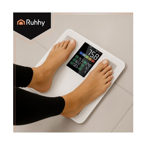 RUHHY analytical bathroom scale with LCD display — white, up to 226 kg
