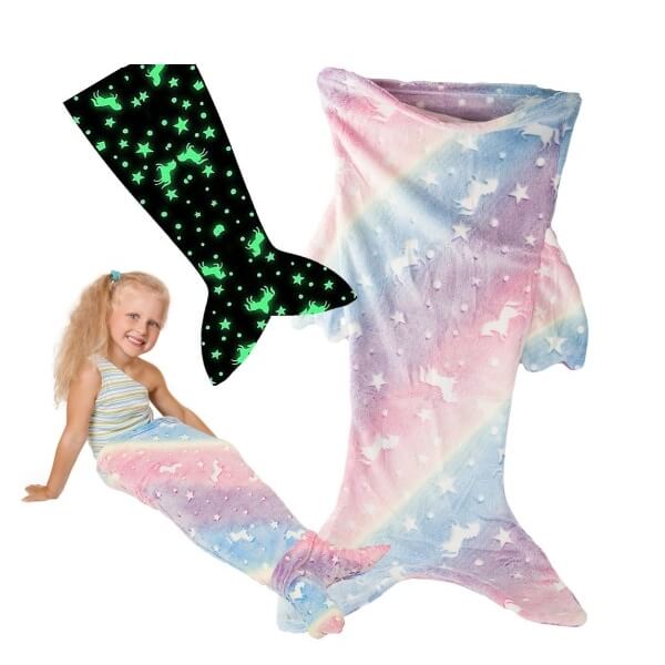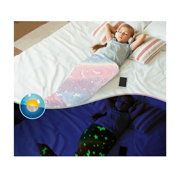 🧜♀️ Helendavate mustritega merineitsi-saba tekk – soe ja pehme magamiskott tüdrukutele