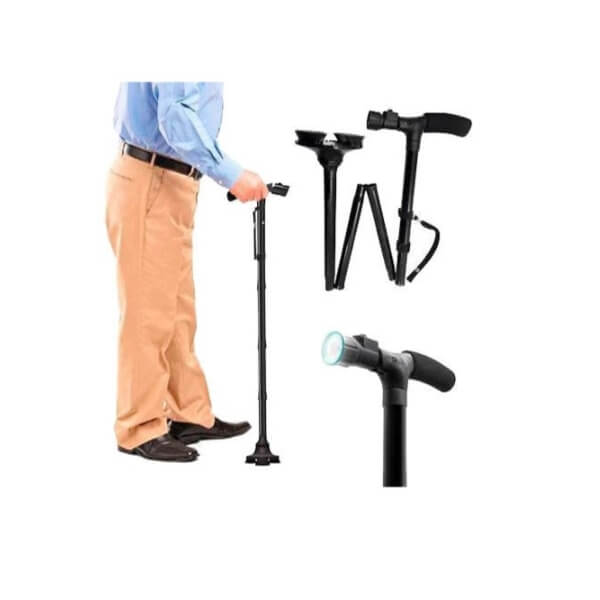 ✨ Kokoontaittuva kävelykeppi 6 LED-taskulampulla – turvallinen tuki joka askeleella!