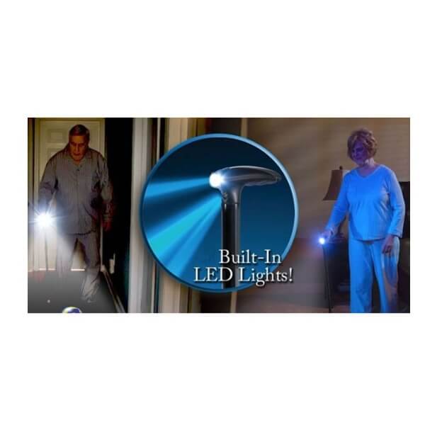 Lisaks on käepidemesse integreeritud liikuv taskulamp 6 ereda LED-iga, mis valgustab ohutult teed õhtustel või hämaratel jalutuskäikudel.