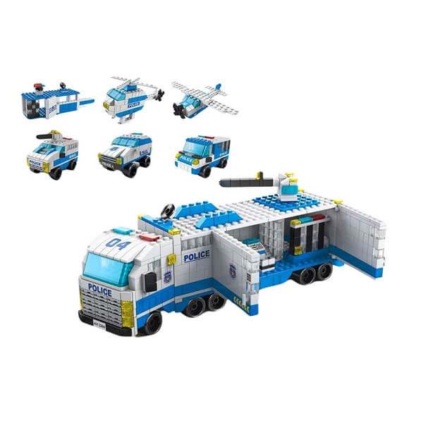 Komplekt sisaldab 1000 hoolikalt valmistatud elementi, millest saab ehitada kuus erinevat politseisõidukit, sealhulgas politsei veoauto. Kõik detailid on täpselt toodetud, tagades lihtsa kokkupaneku ja tugeva, vastupidava konstruktsiooni. Realistlikud mudelid aitavad lastel looval viisil tutvuda politseitöös kasutatava tehnikaga.