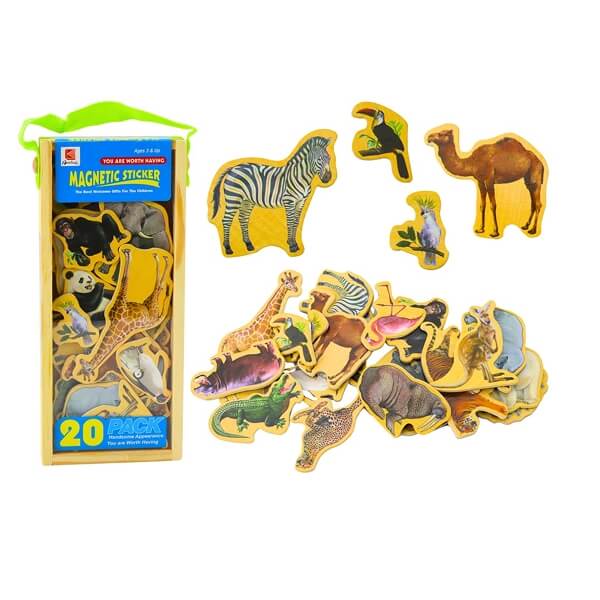 Komplekt sisaldab 20 erinevat loomamotiiviga magnetit, mis võimaldavad lastel tutvuda mitmekesise loomariigiga.