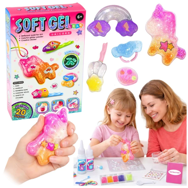 Ainulaadne loovkomplekt lastele, kes armastavad käsitööd ja muinasjutumaailma. Selle komplekti abil saavad lapsed kujundada ja valmistada pehmeid, värvilisi geeljõevõrusid, luues unikaalseid ehteid vastavalt oma ideedele. Komplekt ühendab loova, käelise ja hariva tegevuse, arendades kujutlusvõimet ja kunstilisi oskusi.
