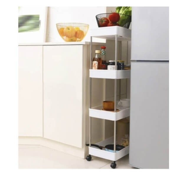 🧺 Kilnojama virtuvės ir vonios lentyna su ratukais – 4 aukštų laikymo lentyna 1 vnt.