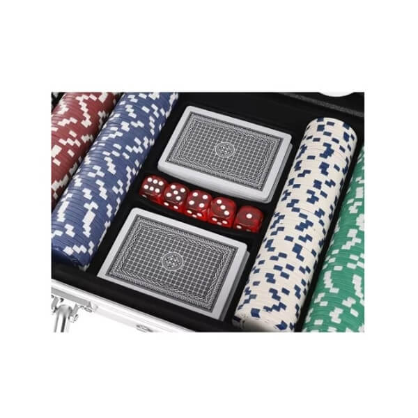 Komplekt sisaldab: 2 kaardipakki (54 kaarti), 5 täringut, 300 žetooni, 3 funktsioonižetooni ja tugevat lukustatavat kohvrit. Eriline tähelepanu väärivad 300 värvilist žetooni, mille sees on metallketas. Väljast on neil plastkate, kuid nende väärtus ja vastupidavus tulenevad metallist sisemusest. Metallketas lisab kaalu, tugevust.