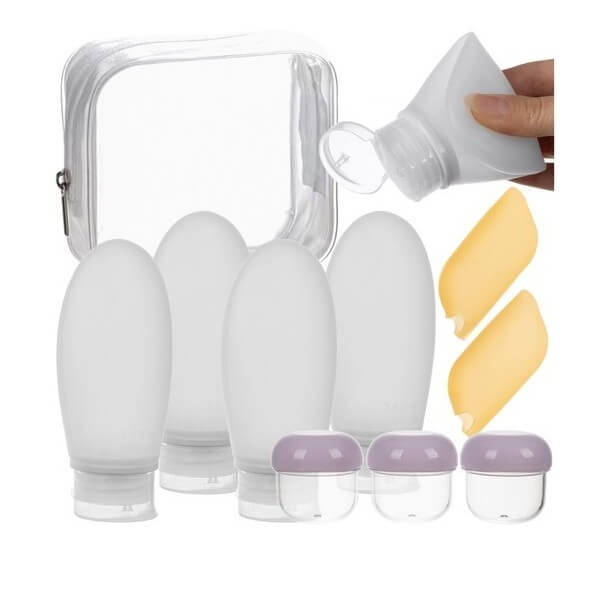 💪 Tugev ja vastupidav materjal – Pudelid on valmistatud pehmest, kuid vastupidavast materjalist, mis ei purune ega kahjustu transpordi ajal. Kosmeetika ei leki ega määri kohvrit.