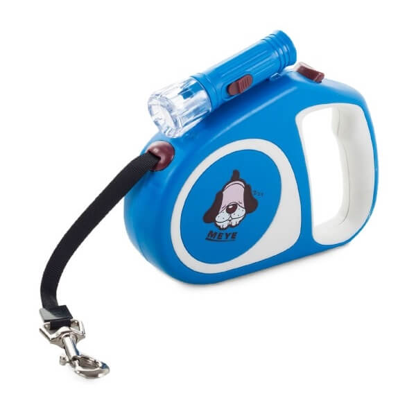 🐶🔵 Automaatne koera jalutusrihm LED-lambiga – 5 m / kuni 15 kg (sinine)
