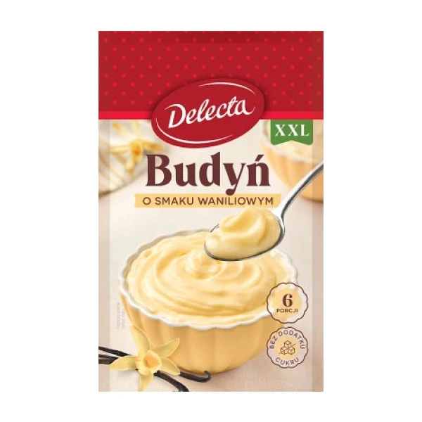 Delecta pudiņa pulveris ar vaniļas garšu ir ideāli piemērots deserta pagatavošanai ar samtainu un vienmērīgu tekstūru. Lielā porcija ir paredzēta līdz 6 personām. Produkts nesatur pievienotu cukuru – saldumu varat pielāgot savai gaumei.