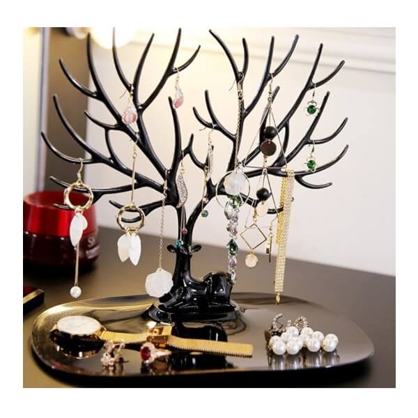 Saad sellele riputada kaelakeed, käevõrud, kõrvarõngad ja sõrmused, samal ajal kui lai alus mahutab väiksemaid esemeid – näiteks kosmeetikat, juukseaksessuaare või muid pisikesi lemmikuid. 💍