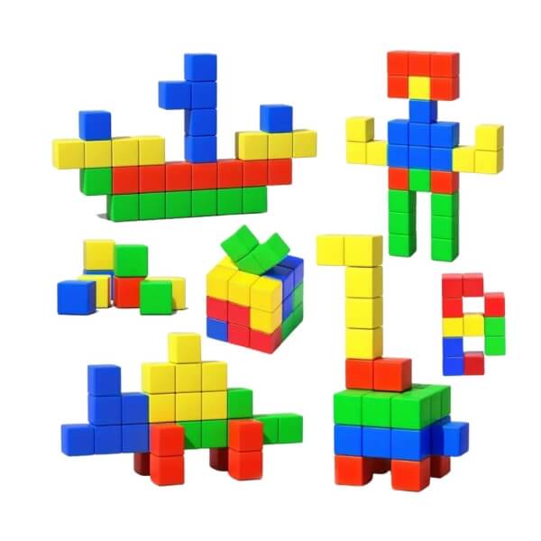 Värviliste kuubikute kujulised magnetklotsid on hariv mänguasi lastele, kes armastavad loovat mängu ja õppimist üheskoos. Komplekt võimaldab ehitada erinevaid ruumilisi konstruktsioone, kujundeid ja geomeetrilisi lahendusi, arendades lapse kujutlusvõimet, loogilist mõtlemist ja käelist osavust. Tänu magnetilistele ühendustele haakuvad detailid kergesti, võimaldades vabalt katsetada nii vormi kui ka konstruktsioonide stabiilsust.
