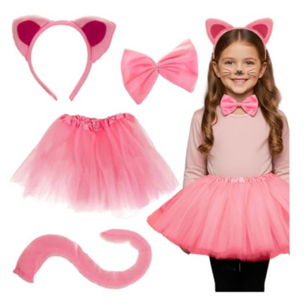 🐱 Rozā kaķa kostīms meitenēm – 4 daļu komplekts!