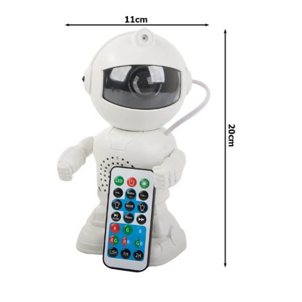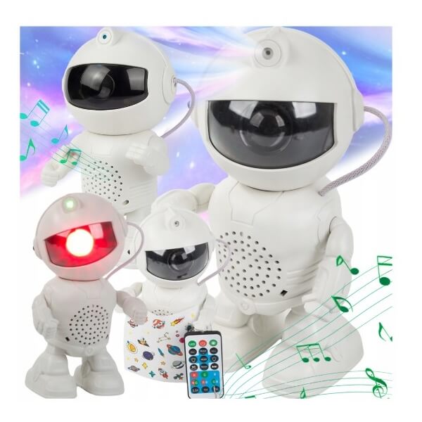 Projektor on pilkupüüdva astronaudi kujuga, liikuvate kätega ja detailse viimistlusega. Kiiver pöörleb ja suunab valguse lakke või seintele. Kiivri ülaosas on kaks lisavalgustit (fikseeritud laserpunktid).