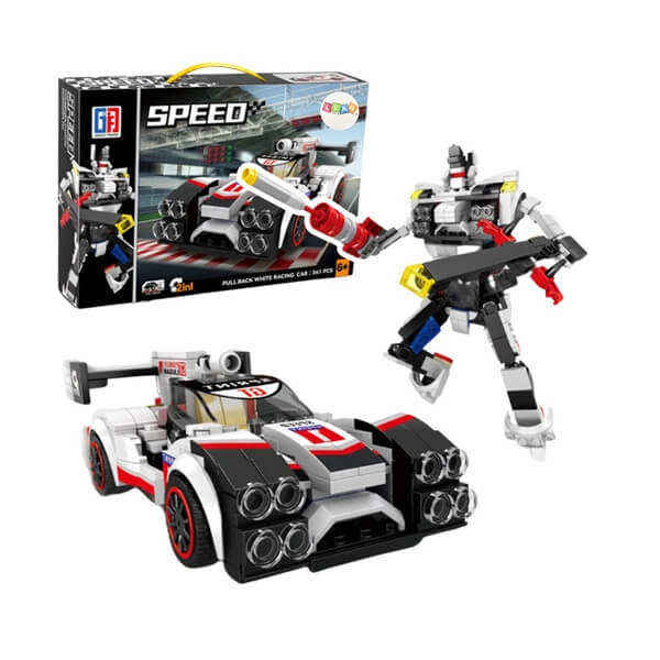 Ehitusklotside komplekt – sportauto ja robot 2in1, valge, 341 osa 🏎️🤖