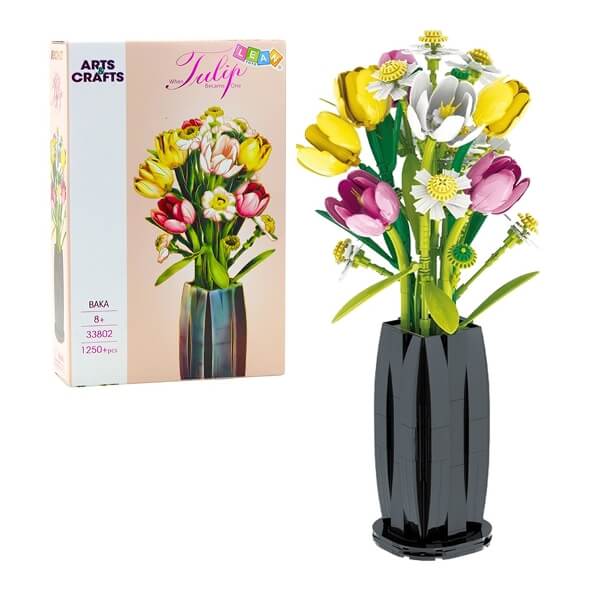 Ehitusklotside komplekt – tulbide kimp vaasis, 1250 osa 🌷🧱