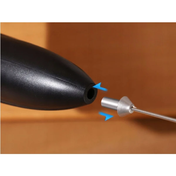 Vahustaja töötab ühe nupuvajutusega – aseta ots piima sisse ning juba 15–20 sekundiga saad paksu ja kreemja vahu. Ergonoomiline käepide tagab kindla haarde ning kerge kaal muudab seadme igapäevaseks kasutamiseks väga mugavaks.