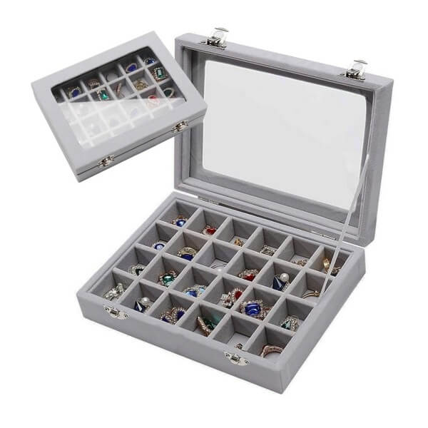 Läbipaistev klaasist kaas võimaldab kogu sisu korraga näha – ideaalne nii koduseks kasutamiseks kui ka ehtesalongi, kaupluse või pandimaja vitriini jaoks.