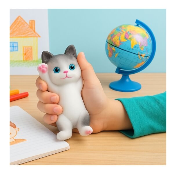 See pehme squishy mänguasi kujutab armast kassipoega ning on loodud nii lastele kui täiskasvanutele, kes otsivad rahustavat ja lõõgastavat sensoorset mängu.