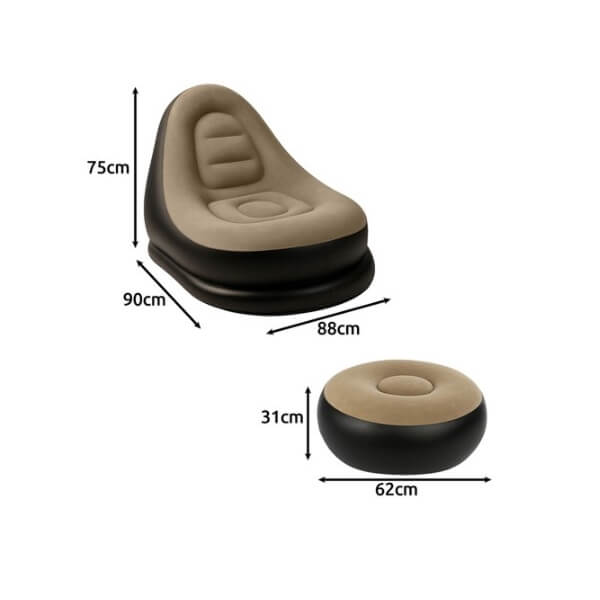 💪 Vastupidav ja tugev – tool on valmistatud paksust PVC kihist, kaetud pehme sametilaadse materjaliga. Kinnitused ja kaasaegsed ventiilid vähendavad õhu lekke ohtu ja kaitsevad torke eest.
