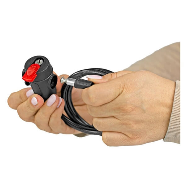 Komplektis on mugav käepide, millega saab lukku lihtsalt kinnitada jalgratta sadulaposti külge, ning kaks võtit lukustamiseks.