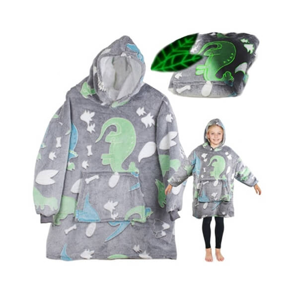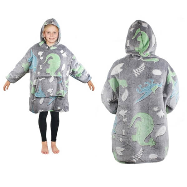 Теплая светящаяся детская толстовка-флис 2в1 – серая, с динозаврами 🦕🌙